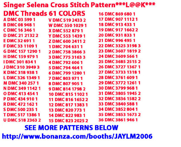 Siinger Selena Cross Stitch Pattern***L@@K***